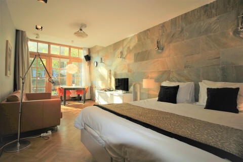 This studio is like a luxury hotelroom with private bathroom and kitchen. 35m2 ground floor studio located in a characteristic building in the center of Amsterdam on Lijnbaansgracht/Lauriergracht. The studio is fully furnished and has an outdoor space where you can sit with a nice view on the canal. Perfect connection for public transport and also easy to reach by car.