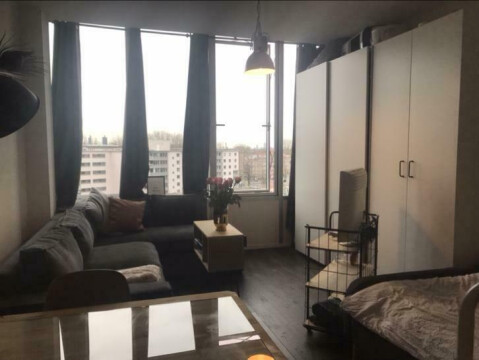 Because I’m moving abroad for a few months for work, I’m subletting my studio. It’s 30m2, fully furnished (including tableware/cutlery/pans/coffee machine/tv/kitchen towels/2 person bed), and has a dishwasher. The studio is located on the park side, has floor heating/cooling and there is an aircooler present. There is a communal entrance on the ground floor with a launderette and a locked bike storage at the side of the building.