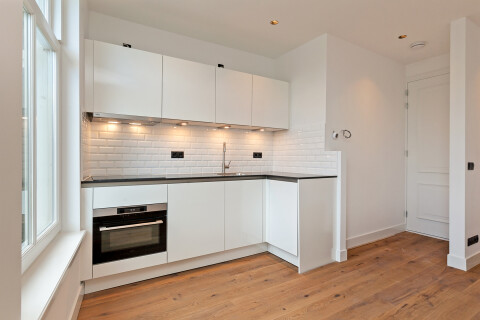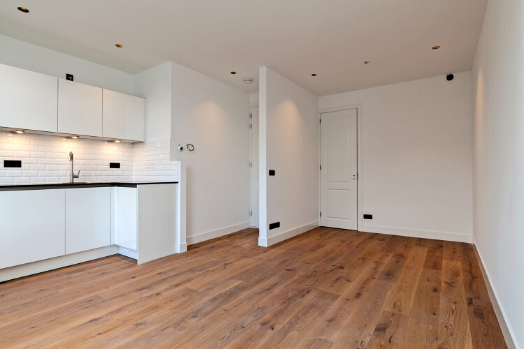 The studio will be delivered in an unfurnished condition, including a floor, ceiling lights, fully equipped kitchen, luxurious bathroom and washing machine / dryer combination.