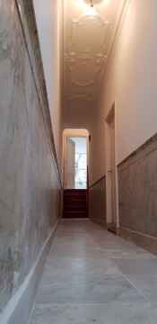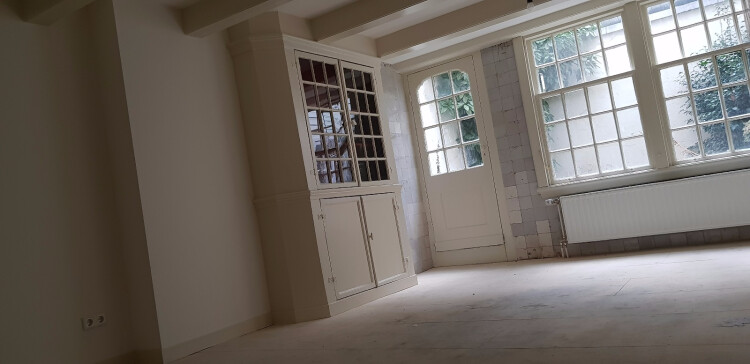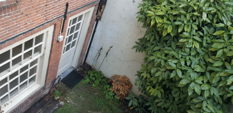 U komt het huis binnen: van hier loopt u door de gedeelde monumentale gang die toegang geeft tot het gezellige souterrain, dat een eigen badkamer heeft met toilet en een eethoek met een elektrisch fornuis, oven / magnetron en natuurlijk een koelkast met vriezer. Let op: er is geen aanrecht: was- en wateraansluiting in de privébadkamer.