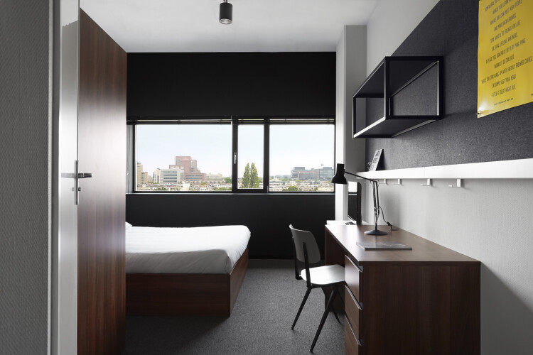 The building: game and lounge areas, study rooms, on-site gym, laundry facilities, a restaurant/bar with great events and a super cool group of students from all over the world. The room is 19 m² and is available for students only for 10 months period from €1,016 p/m with all gas/water/electricity bills included. No extra fees!